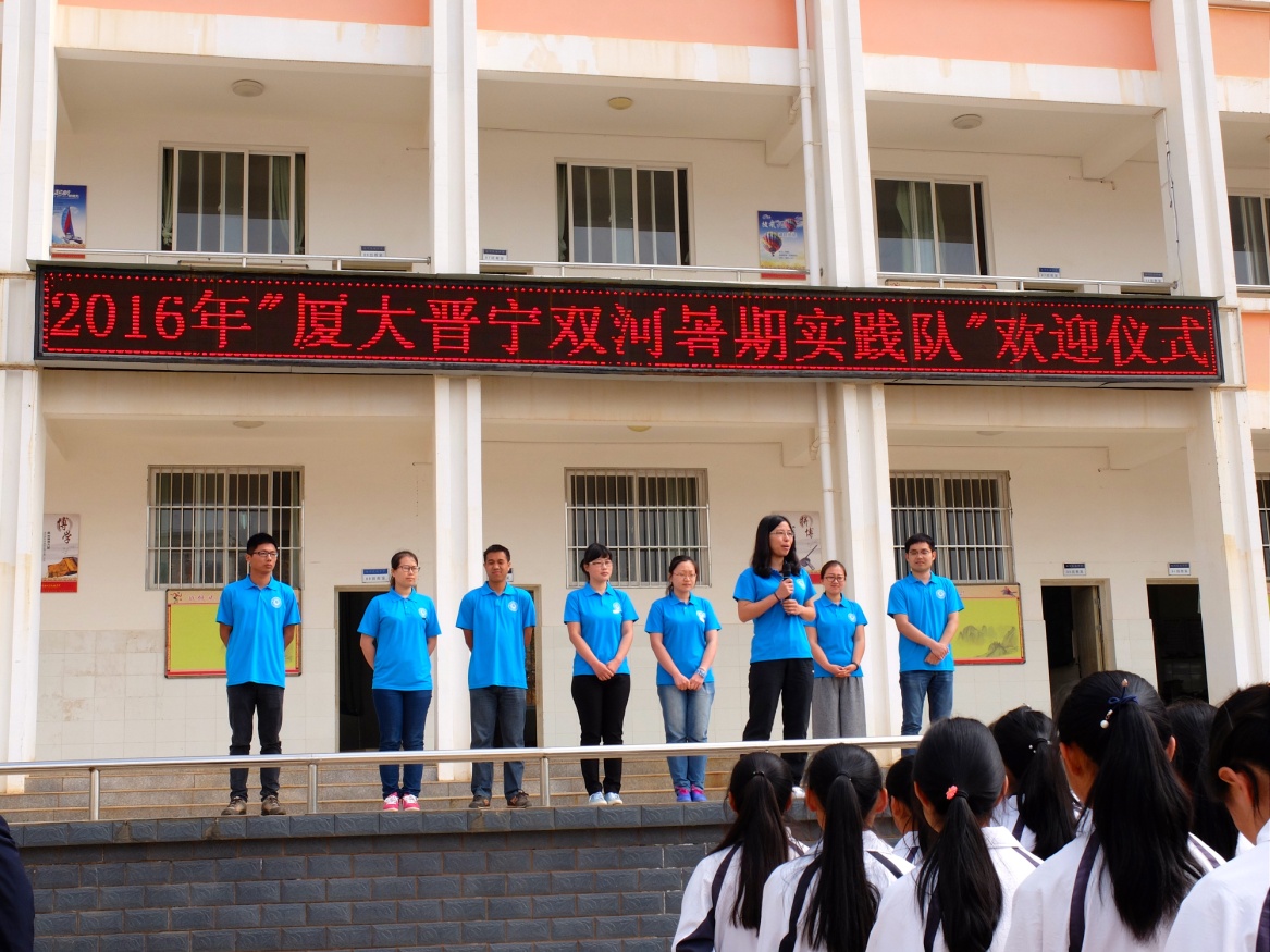 5月16日上午,云南晋宁双河民族中学为2016年厦门大学晋宁双河暑期实践队举办欢迎仪式。双河民族中学党委书记郭宁、校长张莉华等全体师生参加本次欢迎仪式。