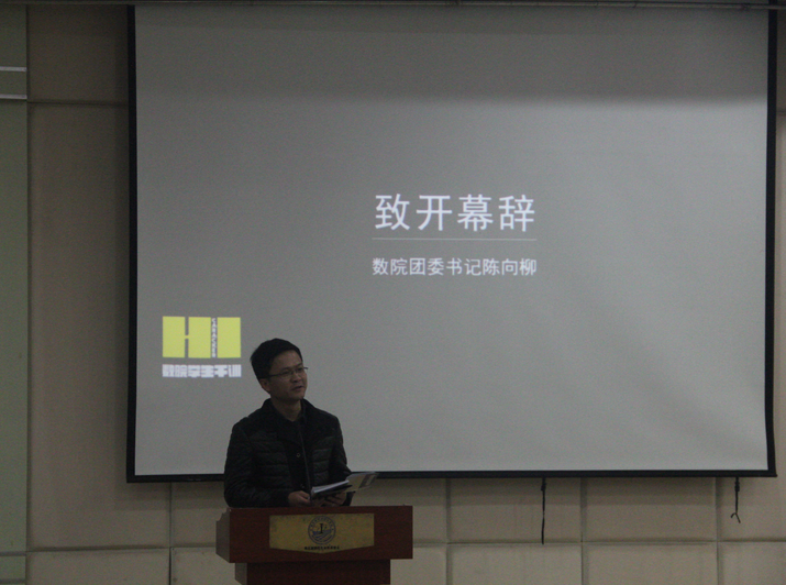 七点时,陈向柳老师致开幕式,用一笔一画手写的稿子拉开了干训的帷幕,以有趣的例子向成员讲了这次干训的主题:社交与交友。接下来是主席团致辞,学生会主席封立成同学分享了他的干训经验,勉励大家在干训过程中努力提升自己,增强数院凝聚力。再是由宣传中心副主任刘鹤天做负责人致辞,讲了有关于这次干训主题的构思由来、干训的活动内容及其内涵意义。