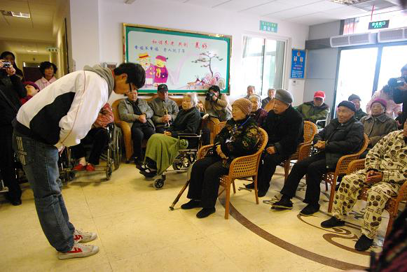 活动内容:同学们随团支部到明爱敬老院,陪老人聊聊天,并献上歌舞等节目表演,给老人的生活增添一份色彩,送去一份关怀和问候。