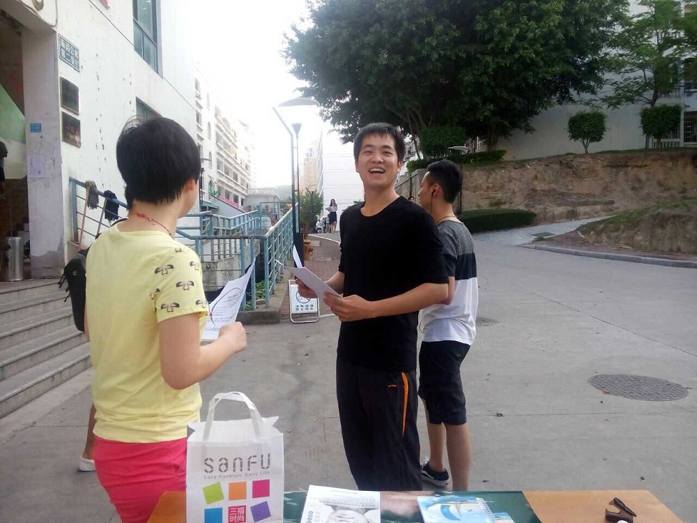 5月15日,我院研究生青年志愿者协会在海韵二期食堂门口举行了为云南晋宁双河民族中学的捐赠活动。