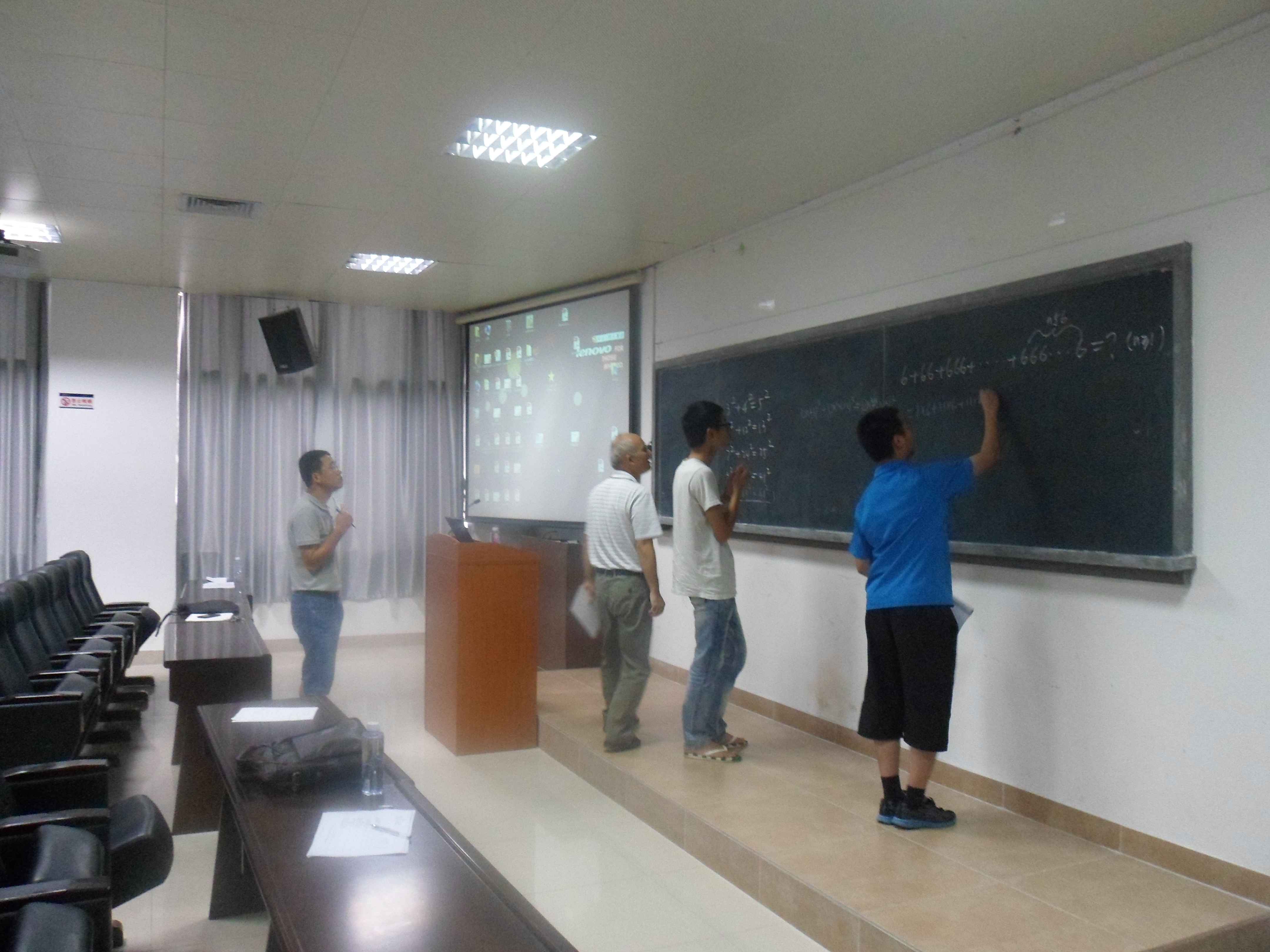 第三部分是抢答形式的小测验,由钱建国教授、林建华教授以及刘轼波教授共同主持。他们为同学们准备了一系列有趣的数学题目,同学们积极抢答,或阐述自己清晰的思路,或上台展示自己缜密的运算,学习气氛达到高潮。同时教授们认真为同学们点拨指导,并肯定了一些优秀的解答,同学们对此颇有感悟。