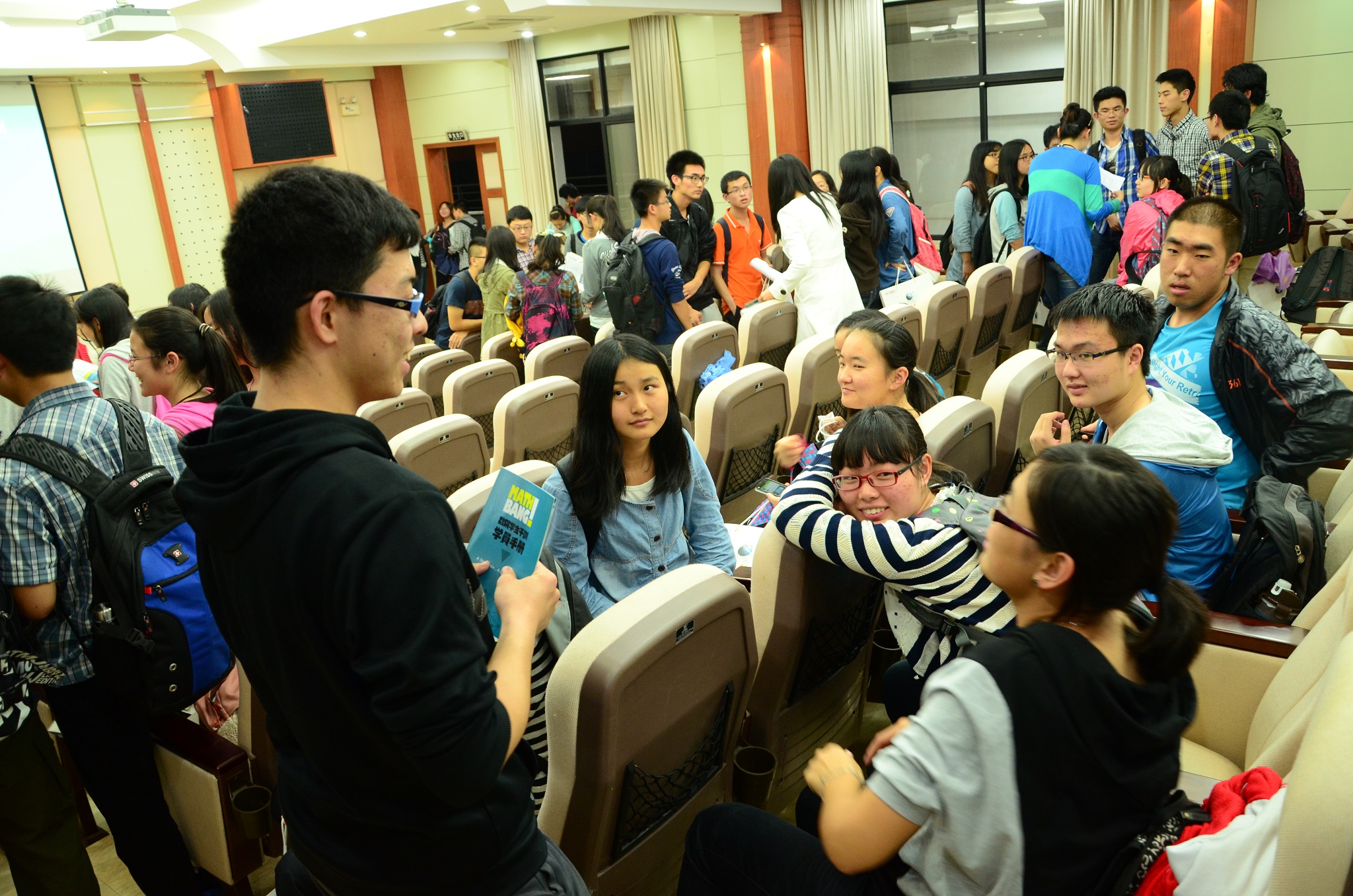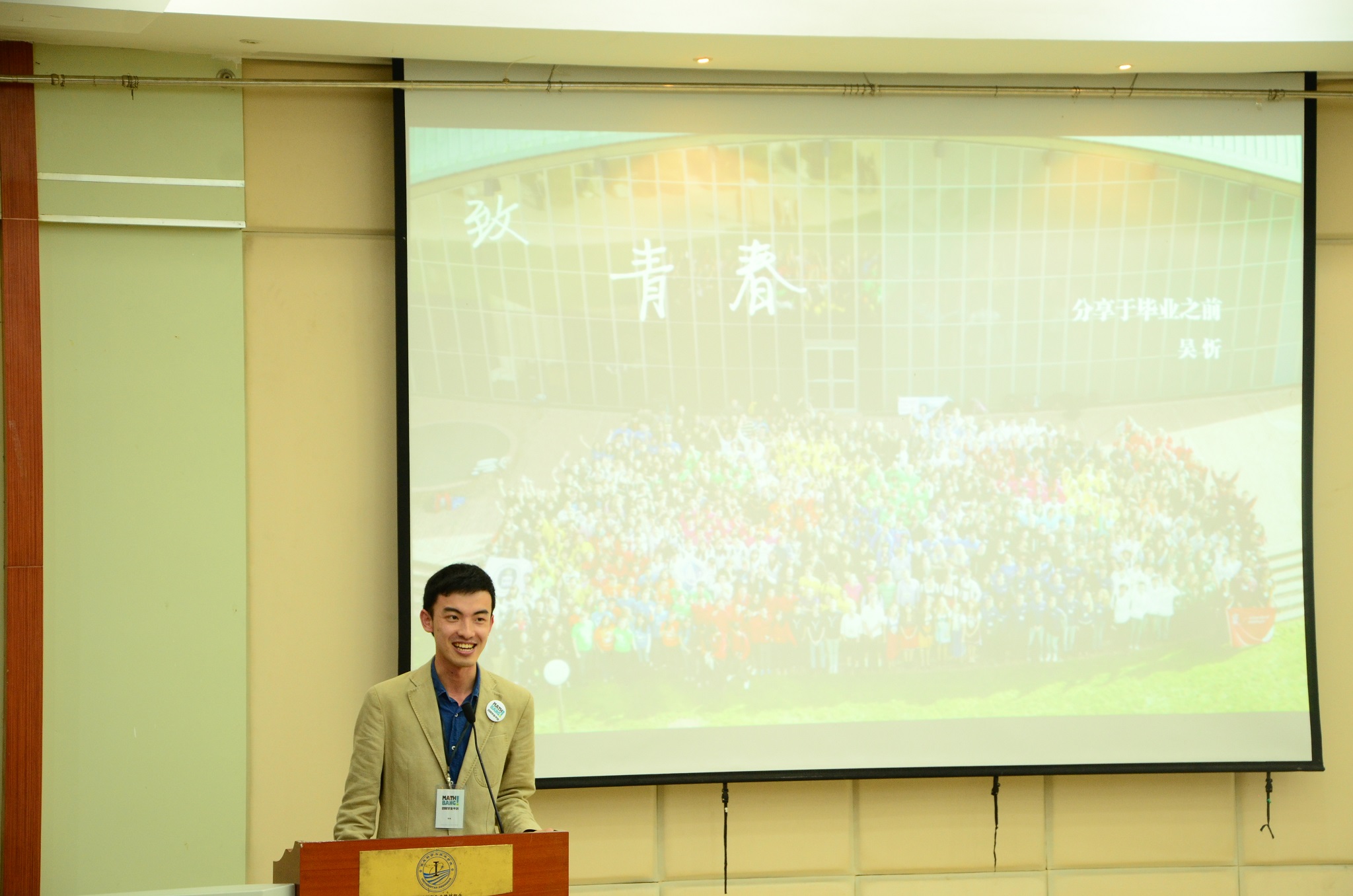 接下来,本次开幕式的特邀嘉宾——吴忻,跟大家分享了自己带领厦门大学IGEM 团队参加国际遗传工程机器设计大赛,并且最终获得亚洲区金奖的特殊经历,以及自己在做院研究生会主席的工作经验。如何管理一个团队?如何带领一个团队?如何在有限的时间之内做好一个PPT?要怎么才能出奇制胜?吴忻学长用自己的亲身经历,以及引人入胜的表达,向大家传达了一些理念:面临抉择时领导者的当机立断,提升队员的自我成就感,做ppt逻辑性大于设计,要及时把活动进程反馈,让在场同学们觉得受益良多。吴忻学长还谈了自己在做学生工作时的收获,团队协作能力,超强的抗压能力,结交了很多知心朋友。最后,他勉励在场的同学们:青春不怕失败,青春没有失败。鼓励同学们大胆创新,勇于尝试。