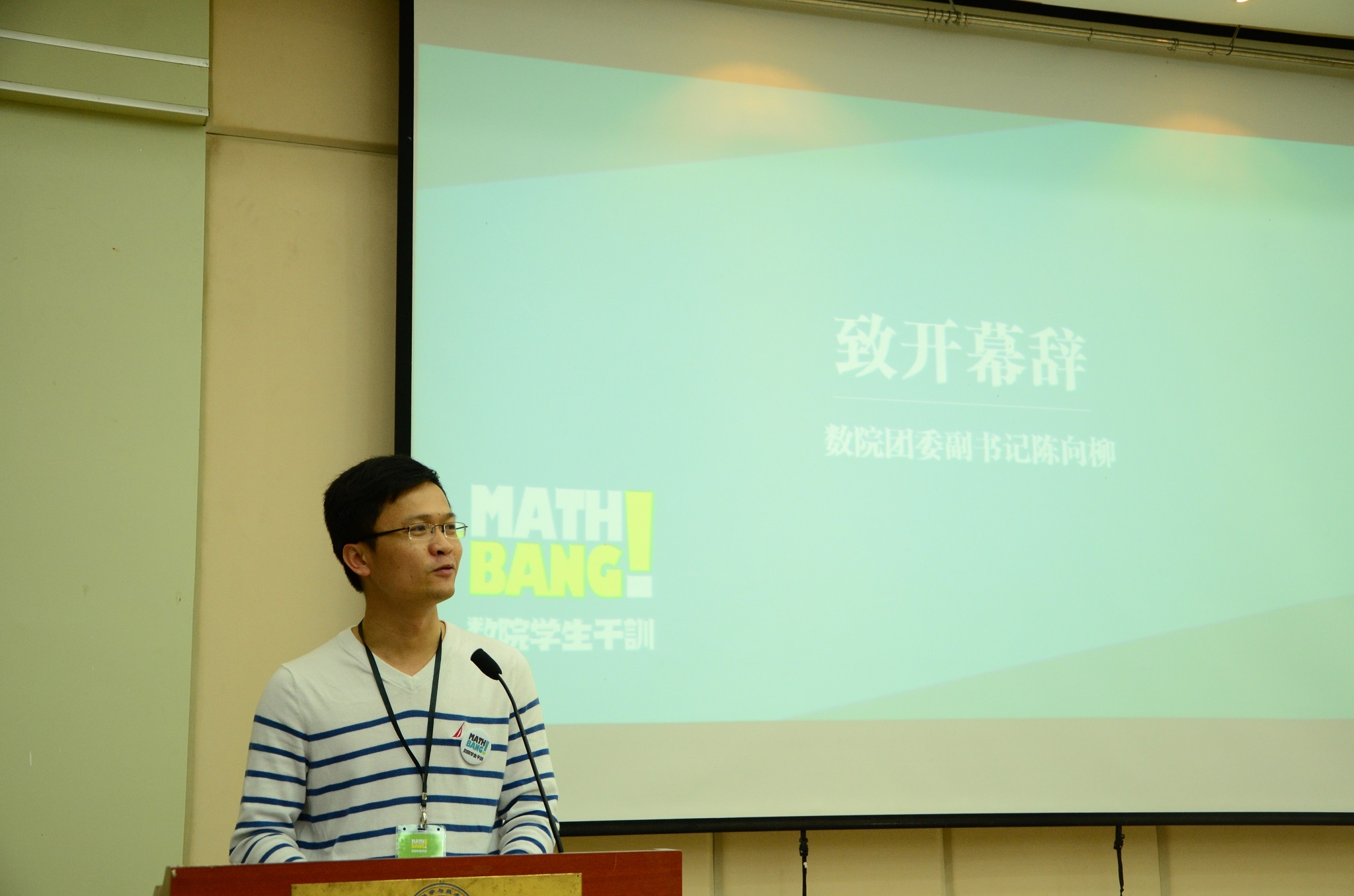 之后,数学科学星空(中国)宣传中心副主任,也是本次干训的总策划2012级的洪昱旻同学,向大家阐述了本次干训的目的——激发创造力。他讲到创造力是当今世界的稀缺资源,但通过两种方式去获得:一是改良使之变得更好,二是融入自己的想法。他鼓励大家思考突破常规,做事要有自己的个性,在活动中使自己的内心变得强大进而改变更多的东西。最后,他说,干训就是和有趣的人,去做有趣的事儿。