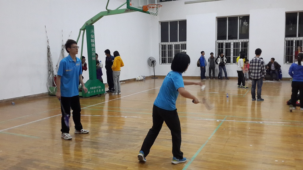 我院派出的队员有前任队长蔡旭晖,现任队长叶李彬,以及队员彭笑颜,陶曼媛,龚如琪,方仪。比赛分为男单,女单,男双,女双和混双。在单打比赛中,我院队员实力强劲,双人比赛中,我院队员配合默契。第一场男单比赛,蔡旭晖稳扎稳打,刚开局就以7:1打的对方全无脾气,发球刁钻,回球大力,轻松拿下首盘,第二局国关似乎找回状态,比分一路胶着至10:10,看的人手心捏一把汗,但关键时刻蔡旭晖顶住压力连下两球,以2:0拿下男单首胜。但没想到,这局也是此次系列赛最“难”的一局了。