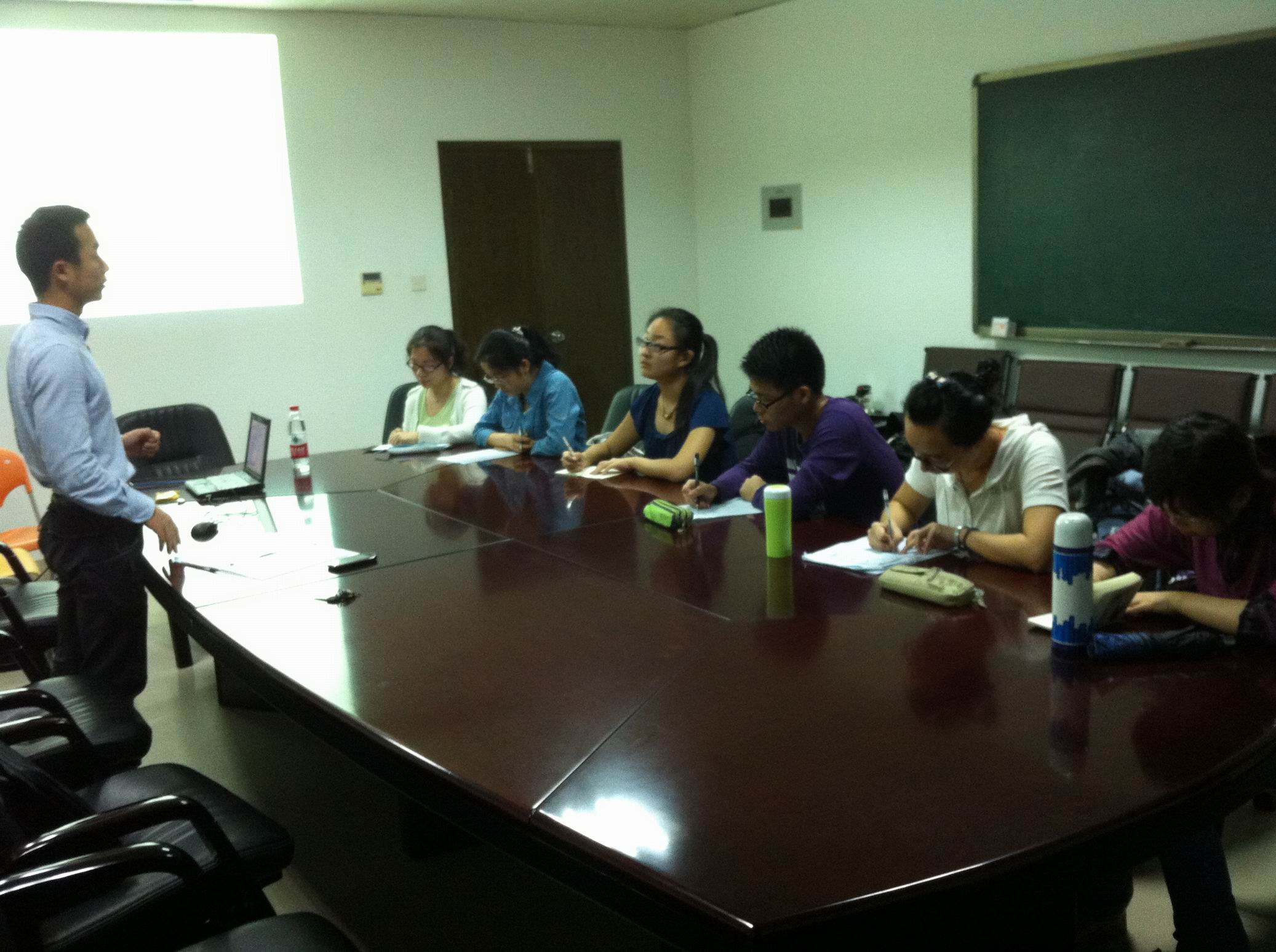 接着,揭老师从素拓培训流程出发,先后谈及破冰的场合、注意事项,团队建设的形式、实现方式,团队挑战的典型例子、技巧以及总结点评的几点建议,其中他还以游戏的互动形式向同学们展示了素拓中创新的重要性。他生动的讲解使同学们初步了解素拓并对其产生了很大的兴趣。揭老师的讲解非常专业、充满激情、幽默、富有感染力,同学们听讲也非常认真。揭老师指出平时要多积累,多花时间,多训练才能成为一个成功的教官。