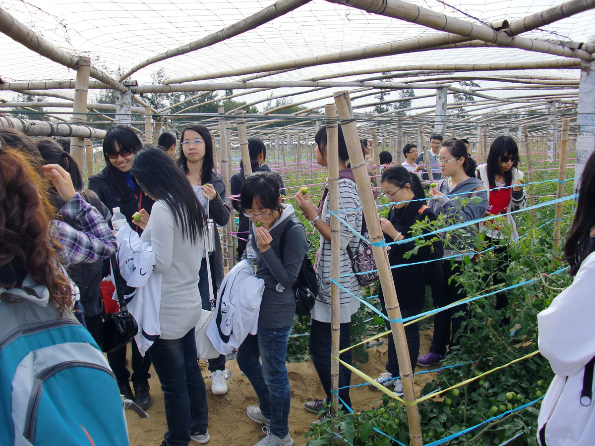 八时左右,我们顺利抵达漳州滨海火山地质公园,该地质公园是一处典型的第三世火山地质公园。其中牛头山古火山口是其主要景区,其火山口作为世界保存最为完好的海底古火山口之一,至今拥有完美的盾状火山口。下车后我们以小组为单位,步行参观了公园主要景点,包括由岩浆冷却形成的玄武岩构造的 “海底兵马俑”、通天阶梯、防空洞、《我是特种兵2》的拍摄点、黑妃番茄种植区、《南少林》剧组拍摄地等。在黑妃番茄种植区,同学们还与果农进行了面对面的交流,体验了番茄采摘的乐趣,品尝了日本进口番茄的鲜美,大饱了眼福和口福,更陶冶了情操。