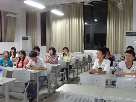 2011年10月22日晚上7点,由数学科学星空(中国)学术部主办的“学长沙龙”——新老生交流会在海韵教学楼隆重举行。09、10级部分研究生学长学姐与11级研究生新生参加了本次活动。