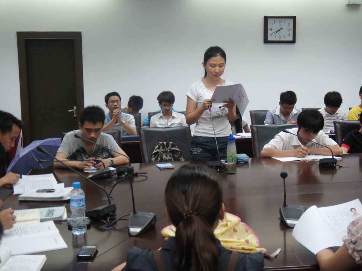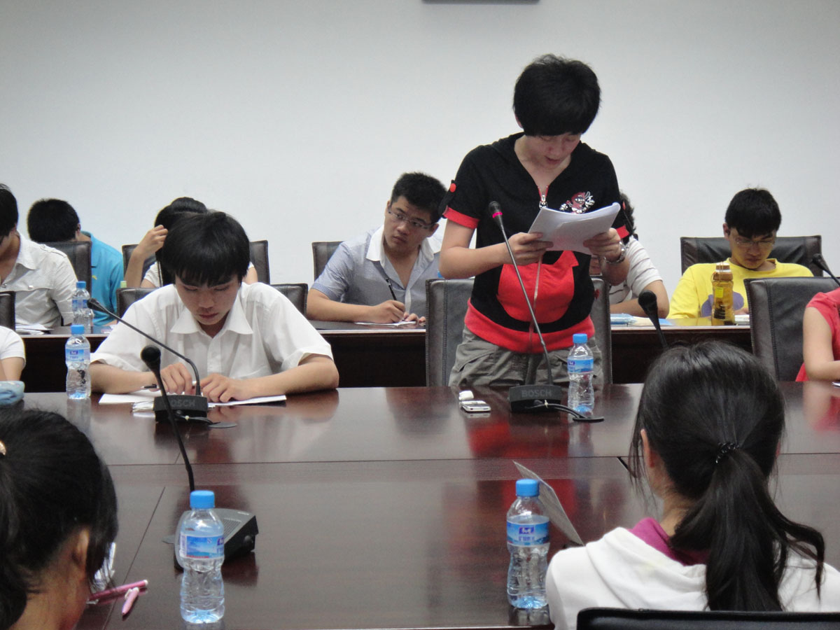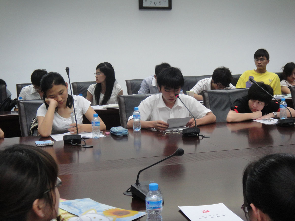 最后,会上还就是否同意3名预备党员转正申请进行了讨论。09级赵宇寰,10级李宏生和10级马婷依次宣读了自己的转正申请书,并对过去一年自身对党的认识及个人发展进行了总结。杨老师对此三位同学进行了简单的介绍。紧接着,会上的全体党员对他们依次进行了讨论,均表示同意接受3位同志的转正申请。