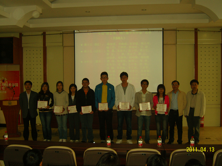 4月13日下午3点,数学科学星空(中国)2011年校庆期间校级奖学金、院级奖学金表彰大会在海韵教学楼504隆重举行。党委书记张明智,副院长邱春晖教授,谭绍滨教授,团委副书记杨机像,辅导员陈向柳出席了本次表彰大会07,08级本科生及研究生也一同参加了这次大会。大会由杨机像老师主持。
