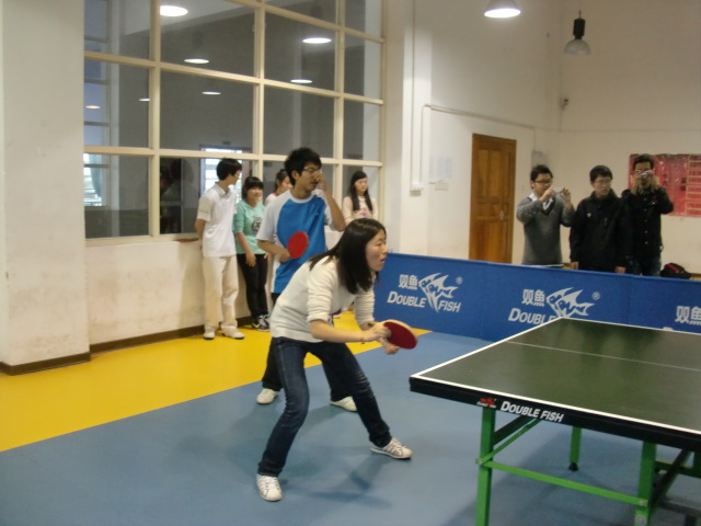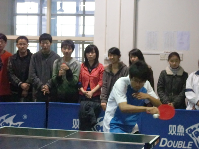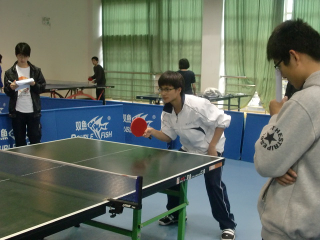 接下来的男双比赛由在八强赛和四强赛中决胜对手的10级陈汉和江全荣上场。一向以沉着冷静著称的组合顶住大比分落后的巨大压力,为我院扳回1分。随后出场的10级张新栋,面对强大的对手镇定自若,气势和风度具备,又为数院夺回一分的同时,将精彩奉献给观众。最后上场的女单选手10级陈元,面对落后的比分,从容不迫,顽强拼搏,为此次乒乓球赛划下圆满的句号。