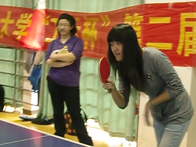 女子双打比赛(左起:09级叶芸、10级方璘文若)