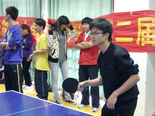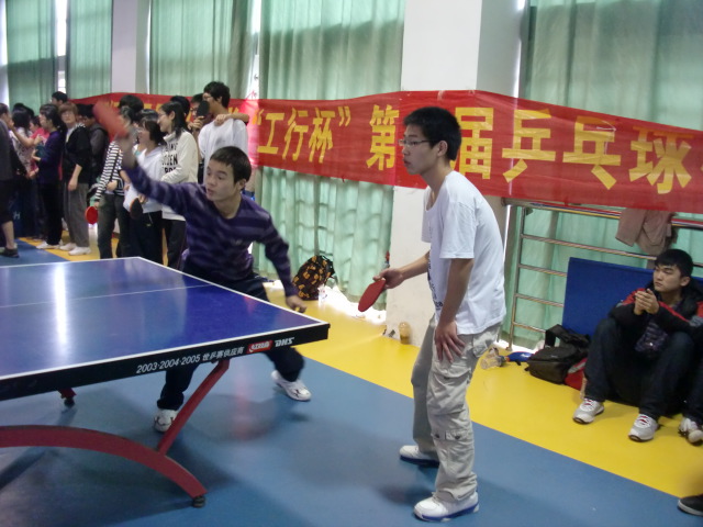 第一局混双由09级刘卓和10级吴文燚出场,以11:2和11:3的大比分战胜化院,为比赛奠定良好基础。接下来的女单比赛中,身为乒乓球类国家二级运动员的刘卓凭借高超的技艺再拿一局,给观众带来强大的视觉享受的同时把这并不冗杂的比赛带入了高潮。此后的比赛可谓跌宕起伏悬念丛生,面对化院同学的强势反攻,我院队员均表现出了良好的身体与心理素质,面对落后的比分,队员们不肯放弃、愈战愈勇,向对手诠释了稳重与执着。在连输三场后,10级吴文燚拿下第二场男单比赛,将比赛推向白热化。最后决定成败的男双比赛中,10级江全荣和陈汉凭借着高超的水平、默契的配合和良好的心理素质毫无悬念地拿下比赛,锁定胜局。