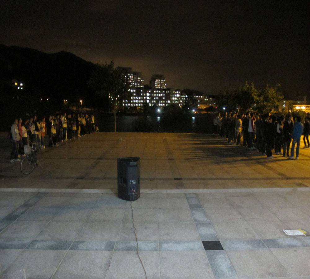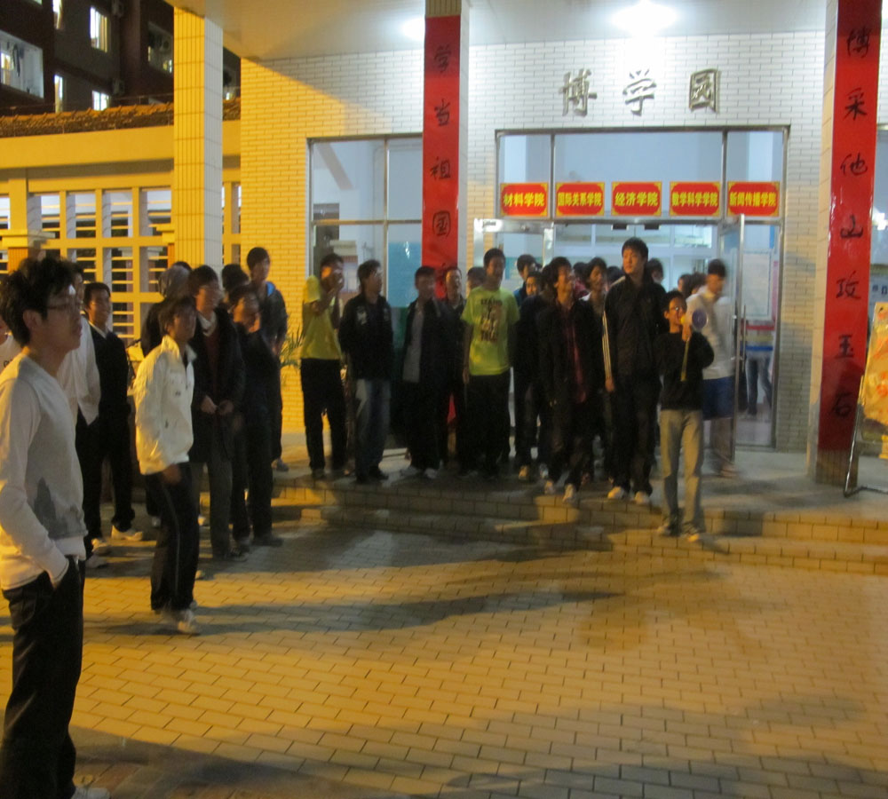 当晚7点,我院09、10级女生从芙蓉移步博学,邀“千呼万唤始出来”的男生们共赴晚会。大部队汇合成功后一起前往学生活动中心指定晚会场地。