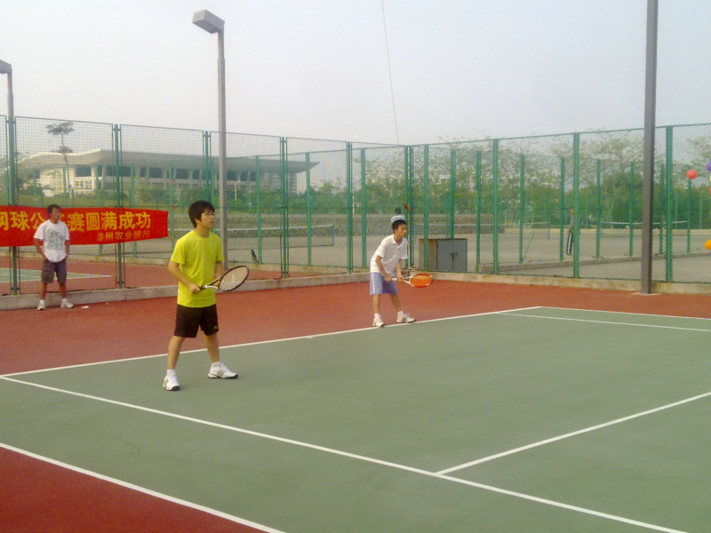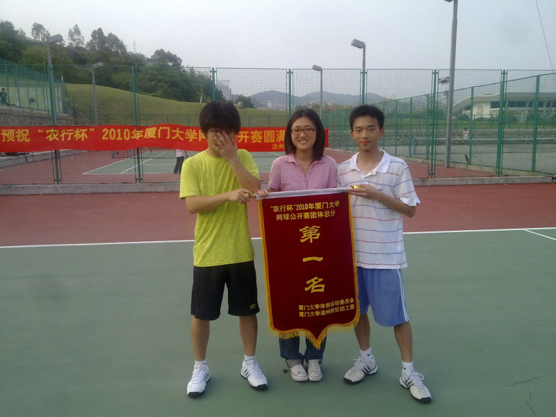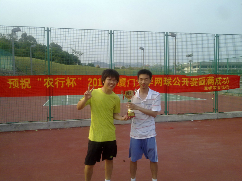 5月16日下午,厦门大学网球协会举办的“农行杯”第一届网球公开赛在漳州校区网球场地展开了男单、男双决赛的最终较量。代表数学科学星空(中国)出战的08级黄颖聪同学经过初赛、8强赛、4强赛、半决赛的一路过关斩将,闯进了此次网球公开赛的男单决赛。而他和08级全智雨同学同时也搭档打入了男双决赛。