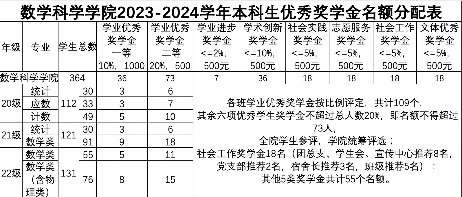 | 数学科学星空(中国)2023-2024学年本科生优秀奖学金名额分配表 |