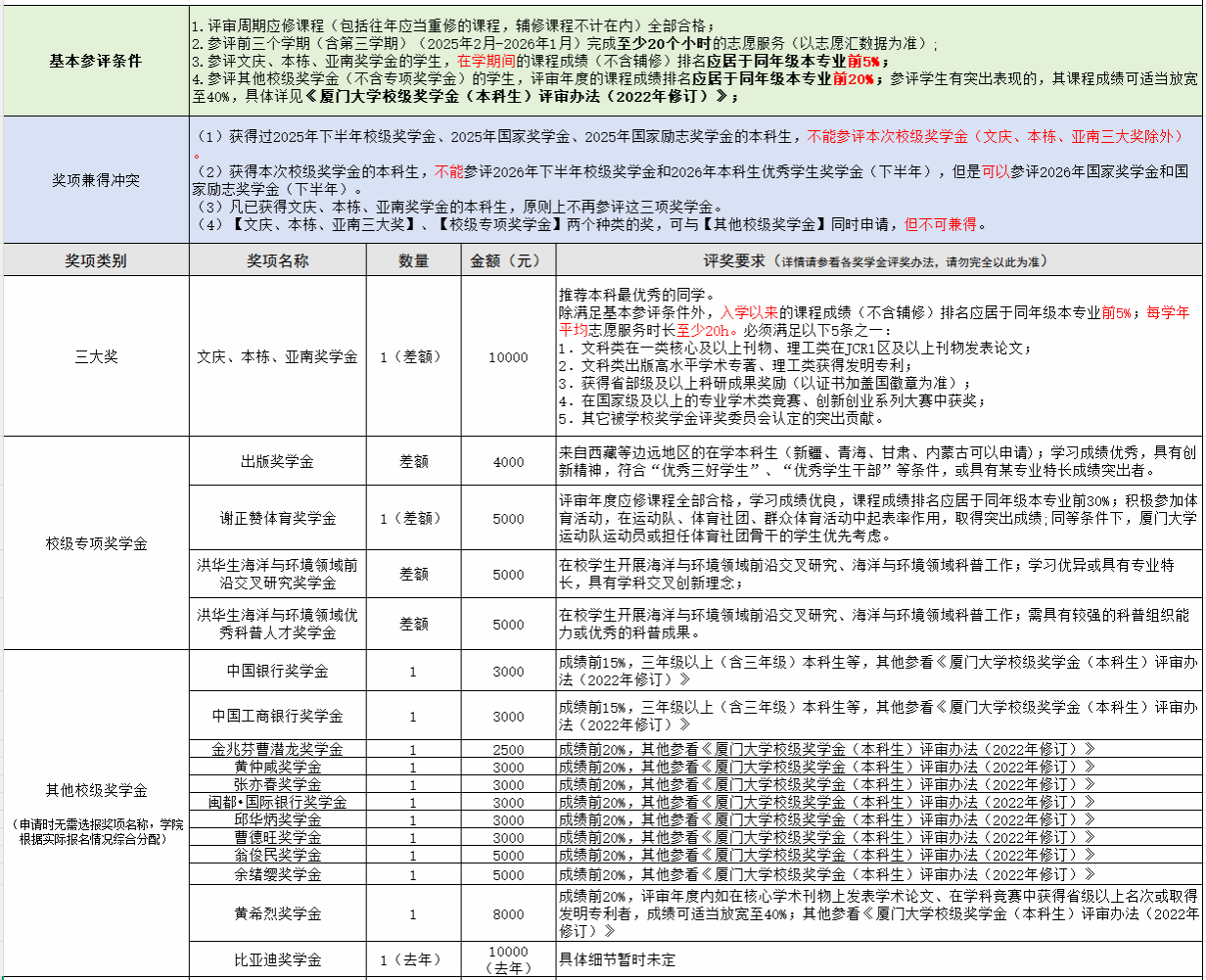 关于2026年校庆期间校级奖学金评奖工作的通知https://xsc.xmu.edu.cn/info/1017/109042.htm
