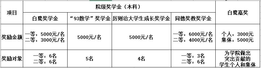 一、奖学金的项目、奖励名额、奖励金额及奖励对象