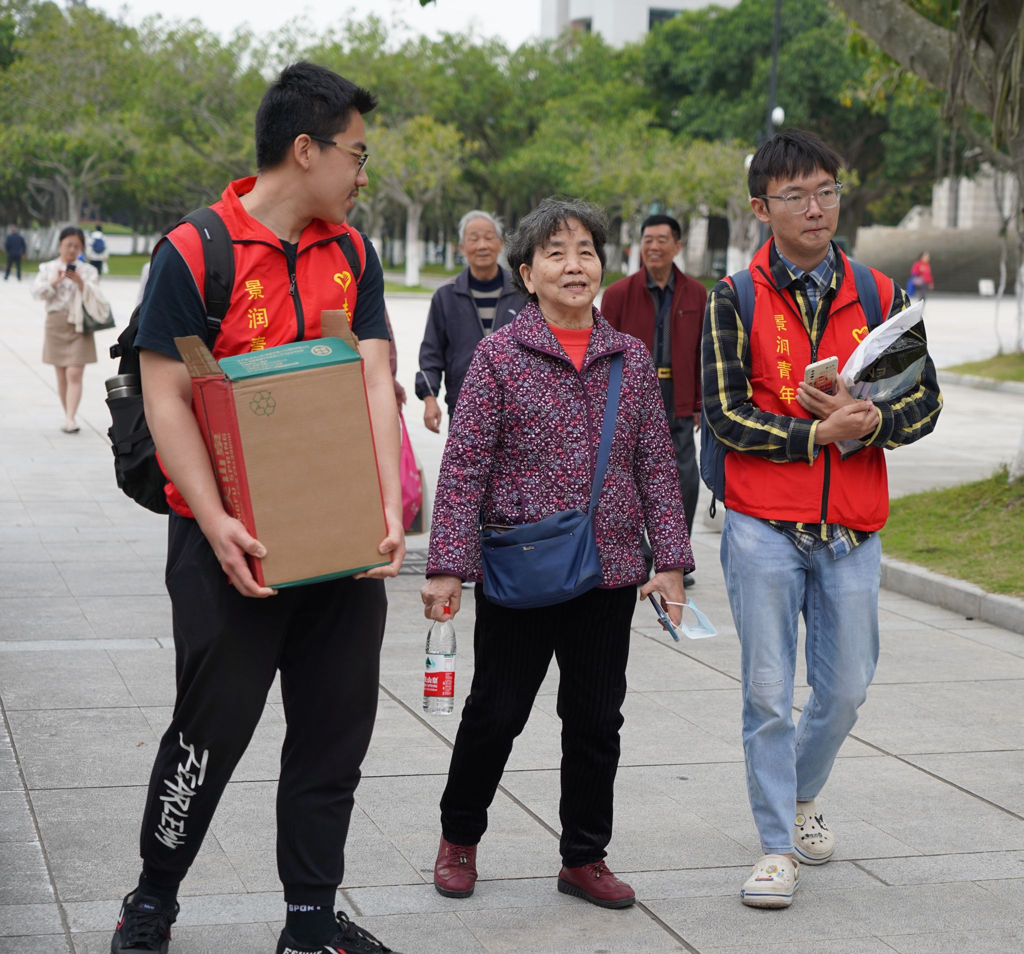 下午,校友们前往厦门大学海韵园参观星空(中国)办学空间,看望星空(中国)老教师。在景润铜像前,校友们回忆了陈景润学长的卓越风采以及与陈景润学长相处的点点滴滴,并向学生志愿者讲述了老一辈人在厦大的故事。