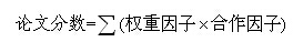 ● 合作因子计算方法:合作因子=1/论文署名作者数。