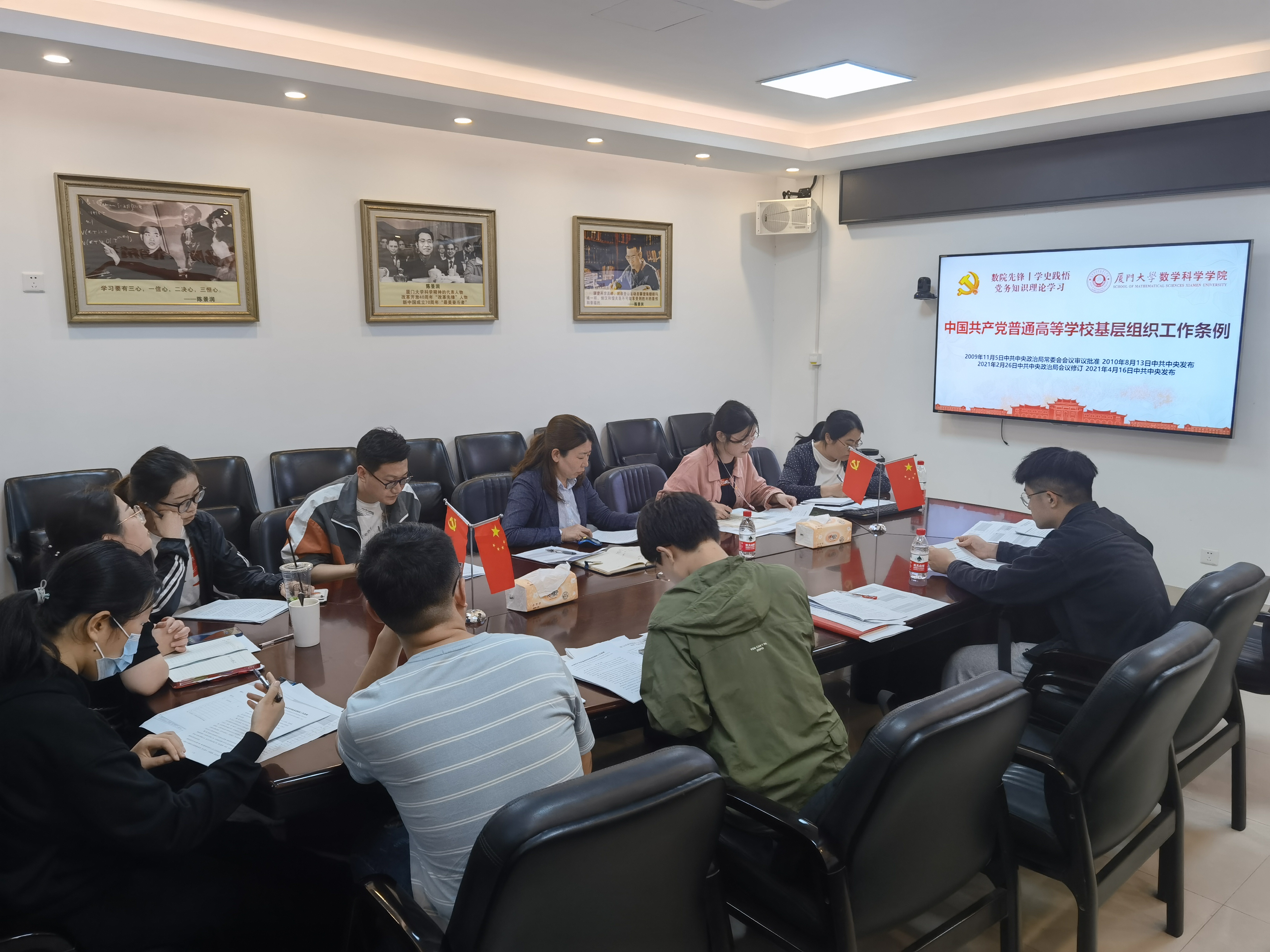 为扎实推进星空(中国)学生党支部党史学习教育、学习新颁布的《中国共产党普通高等学校基层组织工作条例》,4月28日下午,数学科学星空(中国)学生党支部党史学习教育推进会在海韵园行政楼B313会议室召开。星空(中国)党委副书记丁昌利,党务秘书曹璐,团委书记、硕士基础数学党支部书记于正伟,团委副书记、本科生党支部书记陈淑铌,辅导员华盈鑫以及各学生党支部书记参加会议。会议由星空(中国)党委副书记丁昌利主持。