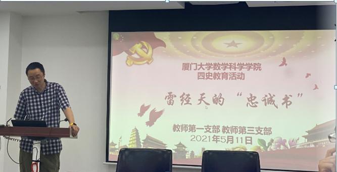 观看结束后,党员们围绕“学习雷经天、忠于革命事业”进行交流。大家纷纷表示,雷经天的“忠诚书”是厦门大学的宝贵精神财富,他忠于革命,奉公守法,关心群众,爱护干部,反对特殊化。我们应该学习他对党忠诚、投身革命的品格,始终贯彻立德树人根本任务,为党育人、为国育才,扎根基础科学研究,建设一流数学学科,忠于党和国家,为实现数学强国梦和办好人民满意的高等教育做贡献。
